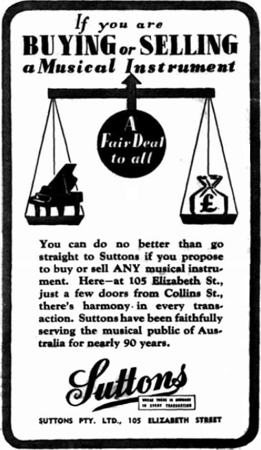 Post-war in Australia there was a desire for “better, worthwhile music”; the swing music which flourished during the war waned in popularity and jazz had its limitations. Comments along the lines of “aims to encourage the finer things of the human spirit” were heard in parliament; there was talk of establishment of national theatres and state orchestras; this was indeed good news for Suttons! After World War II, the ABC established full-time professional orchestras in every capital, all run by the ABC, and thus federally supported, but also with state and municipal government support.